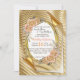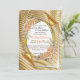 An elegant gold card with flying turnoff gold corners and gold cream roses for a chic announcement card