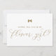 Pretty Parisian theme flower girl proposal flat card. Ask family and friends to be part of your wedding with this personalized "Will you be my flower girl" card. It features a modern gold ribbon bow. Personalize by adding a name and message.