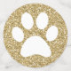 Gold glitter pattern large table confetti (tablefetti) with white cat, dog, or animal footprints to decorate tables at a cat or dog theme baby shower, pet birthday party or shelter fundraiser event. No puppy or kitten theme birthday for a little girl or boy, or adult who loves animals, is complete without added fun of sparkly looking paw prints on the tables.