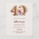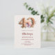 A modern, stylish and glamourous invitation for a 40th birthday. Beige coloured background, decorated with a peach and purple watercolored flower. The name is written with a modern hand lettered style script. Personalize and add your party details. Number 40 is written with a balloon style font, script.