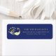 Envoyez à vos cartes de fin de année avec style cette étiquette d'adresse de retour festive avec un paon d'or, et un texte sur un arrière - plan bleu minuit. Ce étiquette de adresse fait partie de la collection Love + Joy Christmas.
