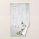 Add an elegant touch to your bath with a Gold Peacock Personalized Bath Towel Set. Towel set design features a vibrant gold peacock, a soft white leaf vine against a light grey grunge background with an area to personalize with your name. Additional gift items available with this design as well as a variety of colours.