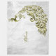 Keep warm on chilly fall and winter nights with a Gold Peacock Personalized Fleece Blanket. Blanket design features a vibrant gold peacock, a soft white leaf vine against a light grey grunge background with an area to personalize with your name. Additional gift items available with this design as well as a variety of colours.