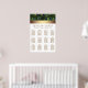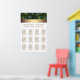 Peacock wedding table seating chart with beautiful emerald green peacock and gold design. You can move the design elements as needed and choose the font style, size and color of your preference. You can also change the background color.