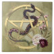 Gold Pentacle and Snake with Roses Pagan Altar Tile