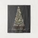 Elegant modern style gold pine cones and boughs with holly berries happy holidays Christmas tree tapestry.