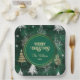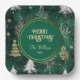 Gold Pine trees Silver Snowflakes Hunter Green Paper Plate