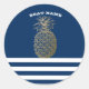 Gold Pineapple Nautical Navy Blue Striped Classic Round Sticker
