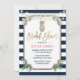 Gold Pineapple Navy Blue Stripes Bridal Shower Invitations.