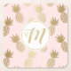 Gold Pineapple Pattern & Monogram Square Paper Coaster