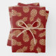 Gold Pineapples on Deep Red Wrapping Paper Sheet