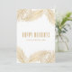 A modern and stylish holiday card that features gold pinecones and pine needles and art deco inspired typography.