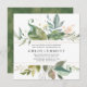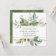 Chic botanical design features a wide leafy border at the top and bottom of this square invitation. Several shades of green and blue leaves and vines give it a Boho Chic vibe. Your wedding details are in the centre in a combination of upright and italics text. A deep green watercolor wash with golden accents covers the wedding invitation back. There is just a touch of pink floral A thin gold frame creates an elegant band effect. This wedding invitation is part of the Gold Botanical collection. It contains the DIY templates you need to create your wedding stationery set. You should see a link to the collection on this page. If you don't see the link or you need help finding an item, please contact me. h