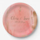 Gold Pink Peach Name Date Elegant Wedding Paper Plate