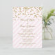 Custom template engagement party invitations in light pastel blush pink and white stripes pattern with gold colour confetti and handwritten style text. Fully customizable with your engagement party details. Also available in a wide range of matching wedding products.