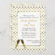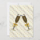 Chic Wedding Engagement party celebration invitation done in a gold tone on white polka dot pattern background, with a gold tone framed white text area. Graphics of two filled champagne glasses decorate the bottom and back of the invitation. Personalize all the text for your special event.