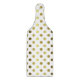 Decorative glass cutting board done in a gold on white polka dot pattern. Customize to add your own text to this stylish kitchen accessory. Great gift idea.