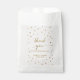 These gold polka dots wedding favour bags are perfect for an elegant wedding. The simple design features chic gold confetti on a creamy champagne background with beautiful faux gold foil calligraphy. Personalize the treat bags with a thank you message, the names of the bride and groom and the wedding date.