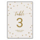 This gold polka dots wedding table number card is perfect for an elegant wedding. The simple design features chic gold confetti on a creamy champagne background with beautiful faux gold foil calligraphy. Add each table number that you need to your cart individually.