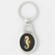 Artistic, polygonal, seahorse of sparkling, gold foil on black background.