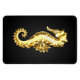 Artistic, polygonal, seahorse of sparkling, gold foil on black background.