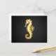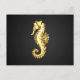 Artistic, polygonal, seahorse of sparkling, gold foil on black background.