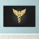 Gold polygonal Caduceus symbols on black isolated background. Low poly symbol of medicine.