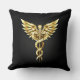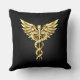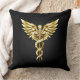 Gold Polygonal Symbol Caduceus Throw Pillow
