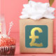 Large golden Pound Sign Graphic. Bright and colourful graphic. Customize the background to bring out the bright colour of the image.
