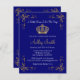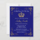 Gold and royal navy blue prince baby shower invitation you can personalize. Gold crown with swirly design - a touch of royal elegance!. A Little prince is on his way! Editable template invitation cards. All text can be edited, font size and colour (or delete where not require). Baby's name in back of card (option to delete).