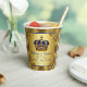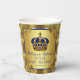 Prince baby shower paper cups with royal blue and gold crown on a beautiful gold swirl background. You can add the text of your choice to these prince baby shower cups.