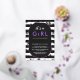 Gold and purple It's a girl baby shower invitation sprinkled with gold foil baby footprints. Striped it's a girl baby shower invitation in a chic combo of black, purple, and gold foil. Retro girl baby shower invitation with stripes, baby feet, and purple details.