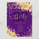 Elegant Glam Gold Purple Floral Glitter 30th Birthday Script template featuring party program and menu text, flower arrangements, glitter confetti and modern typography script.