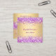 A faux gold looking background. Decorated with pink and purple confetti. Personalize and add your name, title, profile photo, phone number, mail, website adsress, qr code to your website or social media account.