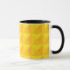 This mug has a geometric design of triangles that form squares that look like a bird's eye view of pyramids.