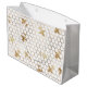 Gold Queen Bees and Honeycomb on White Large Gift Bag
