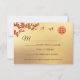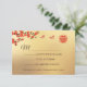 Red cherry blossoms on a gold background and a red double happiness symbol. RSVP Chinese Wedding Card.