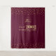 This modern tapestry is perfect for a chic burgundy red and gold colour theme class reunion party. A stylish custom photo backdrop to remember your special day. The design features golden typography " Welcome Back! " with confetti background. You can personalize the graduate year, school name, and event date.