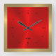 Gold & Red & Metallic Stainless Steel Square Wall Clock