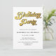 This fun, retro-inspired birthday party invitation features a classic white background with faux gold retro script and simple typography for the invitation text. The script on the front says "Birthday Party. Customize this design further by adding a photo or additional text to the back simply by using the "design tool".