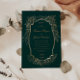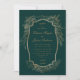 Beautiful gold frame with matching gold details paired with elegant fonts on a deep green background creating a sophisticated wedding invitation suited for year round weddings. Check out our store for more matching items.