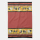 Gold Roosters Red & Tan Check Swirl Kitchen Towel
