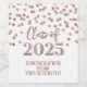 Graduation party custom wine bottle labels class of 2025 with gold rose glitter pattern confetti.
