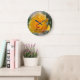 Gorgeous gold rose decorate this eye catching clock. Ideal for home or office décor, adds a lovely floral touch to decorating.