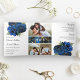Gold Royal Blue Floral Photo Collage Wedding Tri-Fold Invitation