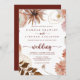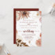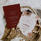 This gold rustic colourful floral front and back wedding invitation is perfect for a simple wedding. The design features hand-painted marsala, pink, blush, burgundy and gold flowers with green leaves arranged into beautiful wreaths.