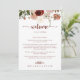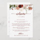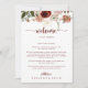 This gold rustic colourful floral wedding welcome letter is perfect for a simple wedding. The design features hand-painted marsala, pink, blush, burgundy and gold flowers with green leaves arranged into beautiful wreaths.