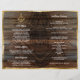 Create your own custom rustic gold Annual Installation of Officers program or folded masonic stationery using a simple DIY template that you can add your personalized lodge information to. The unique, classy freemason design depicts original art by Raphaela Wilson which includes a vintage gold square and compass symbol, faux metallic grunge edge borders, and a backdrop of aged wood. Feel free to enter the names of the officers, include pictures, and even upload your own logo. You can also change the elegant white calligraphy script and classic fonts to a typography that best suits your style. These easy masonic programs may be reworded and folded to be used for a roll call ceremony, as well as invitations, brochures, letterhead, and perhaps as everyday freemason stationery. Category: masonic installation program template ideas; personalized masonic stationery; and printable custom freemason paper sheet. Masonic wood themed party colours: dark brown, champagne yellow gold, black and white.