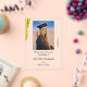 This superb acrylic card announces your High School graduation with style. The basic design features a gold satin partial border on the left with a photo. Be sure to scroll down to get a full product description of acrylic cards (on the left). All text is easily changed with the template. Selecting “Personalize this design” offers you several edit options to easily change the text (wording, plus type font, color, size, position) and to edit the design elements, if desired. You may also want to scroll down to the section “Transfer design to a product” for a few suggestions about other items this design can be used on.