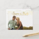 Gorgeous faux gold foil typography on the front of this designer postcard which you can upload into with your own engagement/save the date photo portrait. Easily and quickly personalize this designer professionally printed save the date postcard here and now by just typing over the example text and adding your own photograph. Elegant, chic, simple and classy gold script/cursive typography.